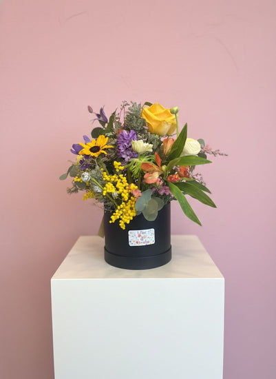 Elegant, contemporary and designed to impress. Our hat box flower arrangements are beautifully styled in a luxury presentation box, with blooms carefully arranged in floral foam to create a full, front-facing display.